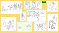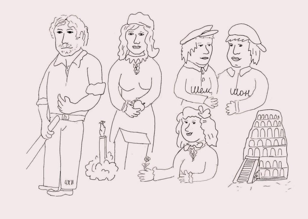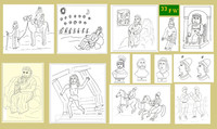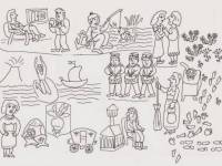 Рисунки по роману Джеймса Джойса Поминки по Финнегану/ Finnegans Wake. Часть II. Дети заняты выполнением школьных уро...