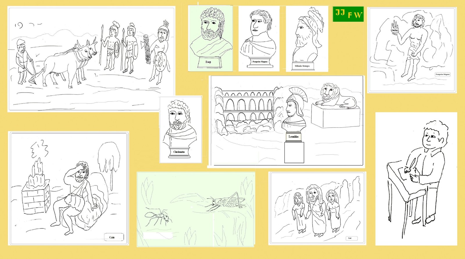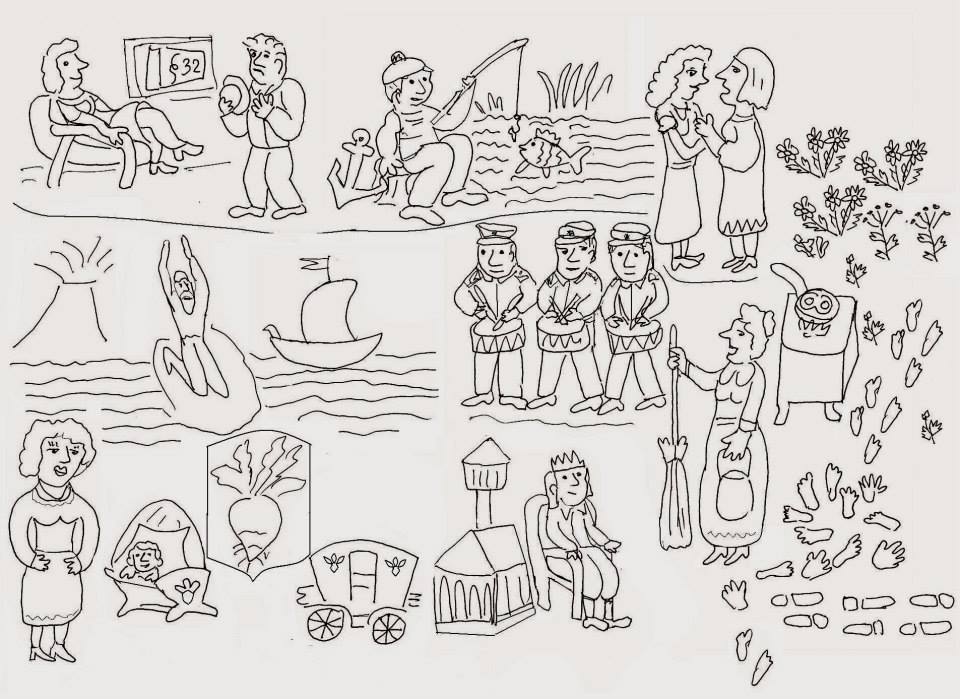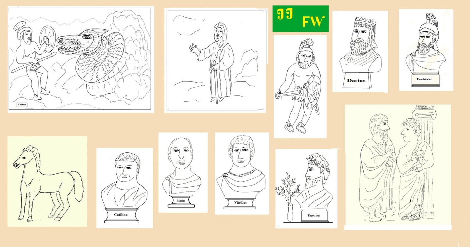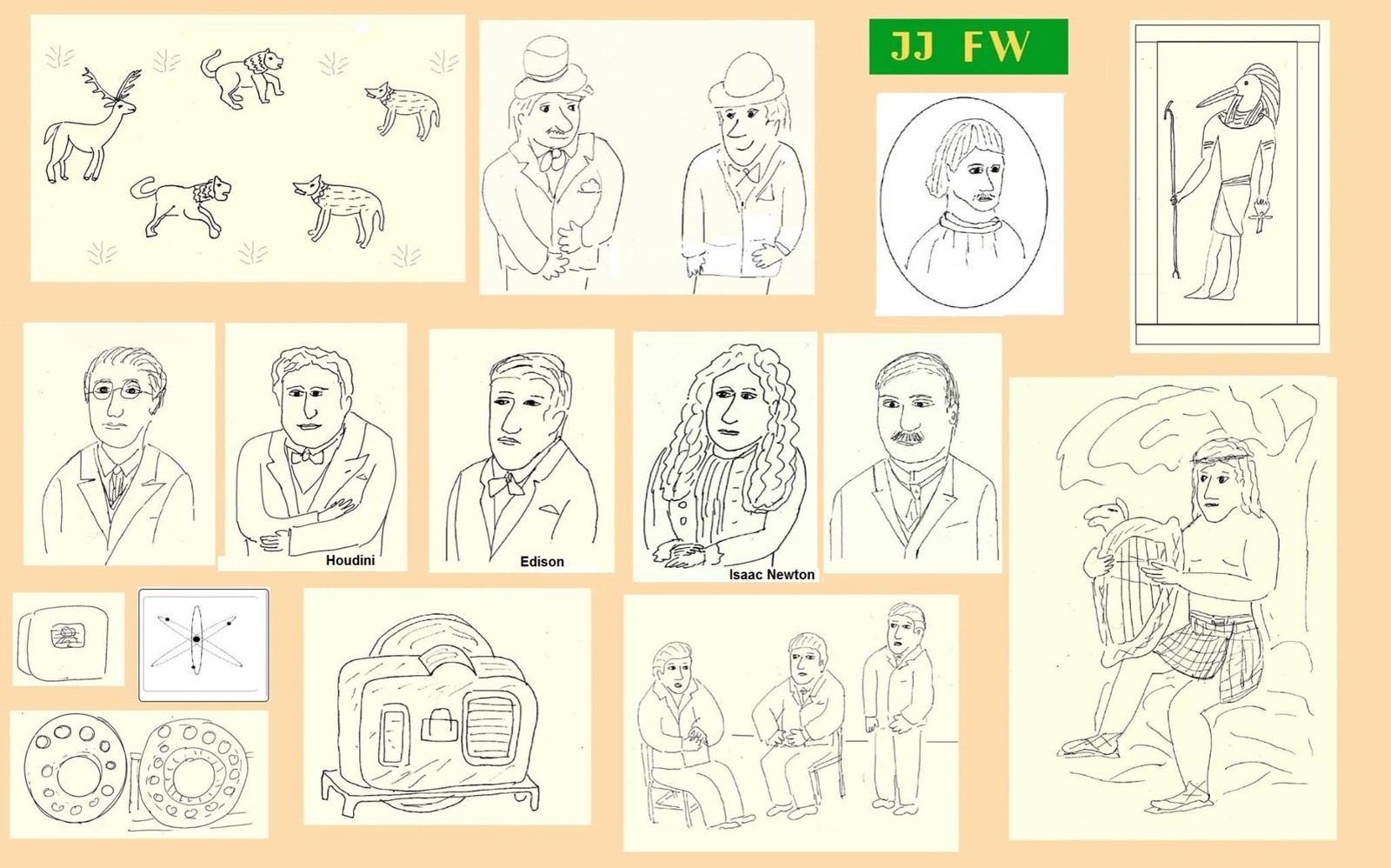 Рисунки по роману Джеймса Джойса Поминки по Финнегану Finnegans Wake . Дети заняты выполнением школьных уроков, истор...