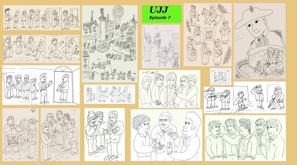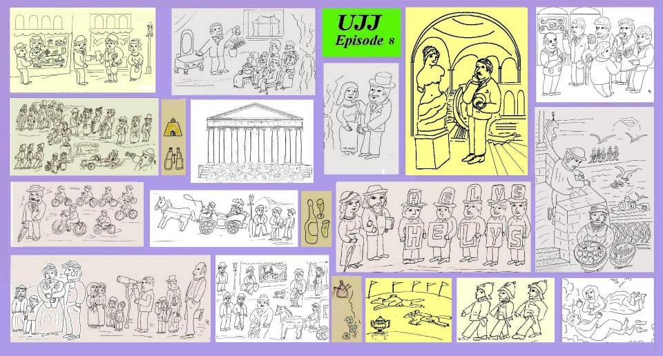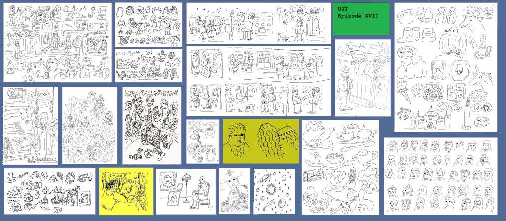 Рисунки по роману Джеймса Джойса Поминки по Финнегану Finnegans Wake. Публике предложена занимательная радиопередача,