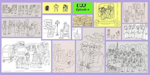 Улисс. Глава 6. Аид. Кладбище. Дорога на кладбище в похоронной карете. Похороны Падди Дигнама, школьного товарища Блума. / Ехать через центр, хороший старый обычай./ Проститься прибыли господа мистер Мартин Каннингем, Пауэр , Саймон Дедал (отец Стивена), Хайнс, Нед Лэмберт, Корни Келлехер, Том Кернан, Генри Ментон, человек в Макинтоше и др./ По дороге Блум вспоминает своего почившего отца и бедного малютку Руди. / Земля, огонь, вода.