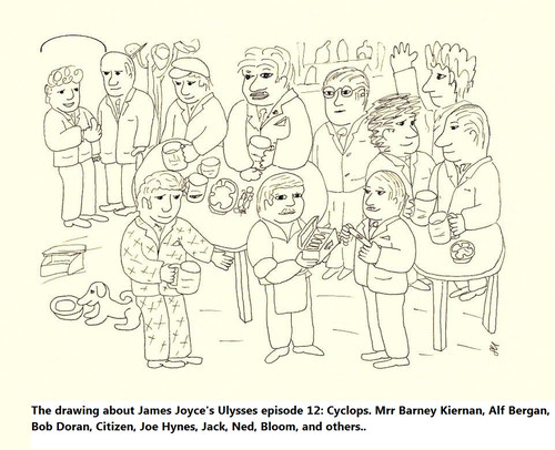 Улисс 12 Циклопы. Разгоряченная компания обсуждает широкий круг вопросов, от спортивных, по ирландской мифологии, до библейских тем и др./
