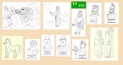 Поминки по Финнегану / Finnegans Wake Часть II. продолжение. Дети заняты выполнением школьных уроков, история, алгебра, геометрия, детям предложены темы сочинений, на 52 исторические личности, необходимо описать их атрибуты. /